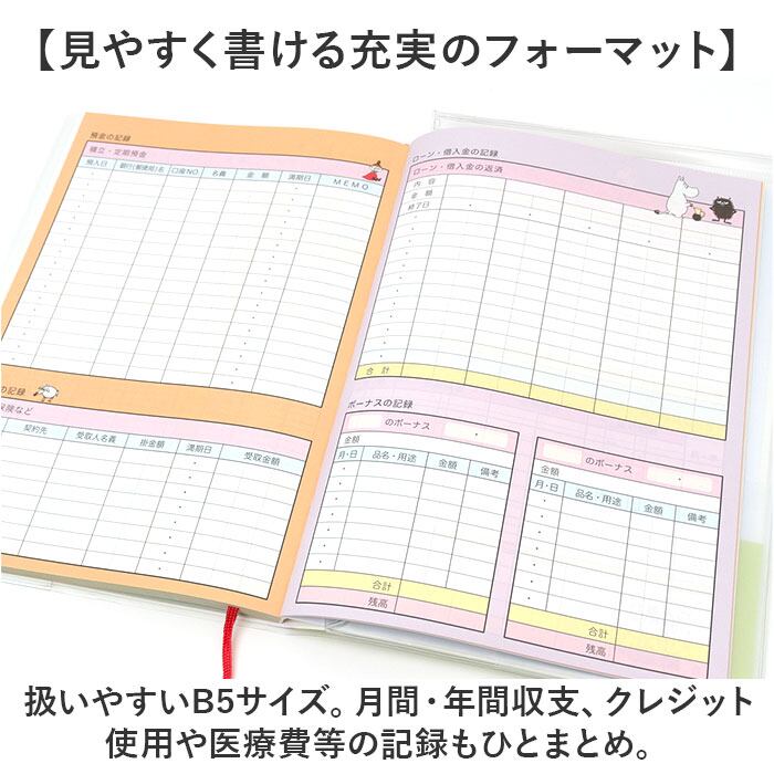 ・扱いやすいB5サイズ。月間・年間収支、クレジット使用や医療費等の記録もひとまとめ。
