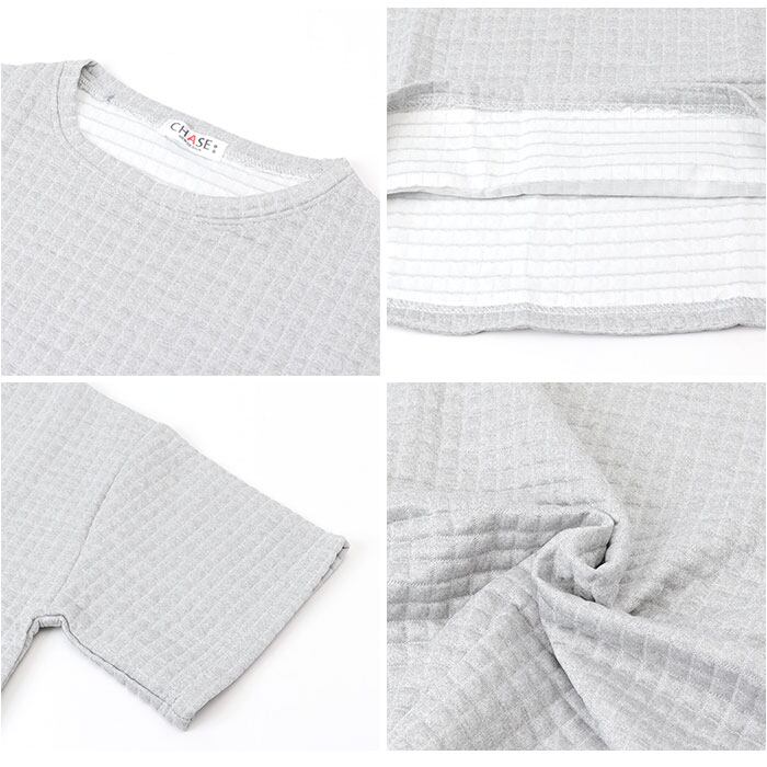 ・ワッフルのような生地が特徴、キルティングデザインがアクセント☆夏も心地よい、選べるサイズで多様な着こなしを楽しむ♪