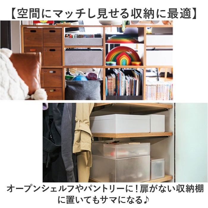 ・オープンシェルフやパントリーに!扉がない収納棚に置いてもサマになる♪