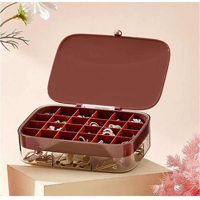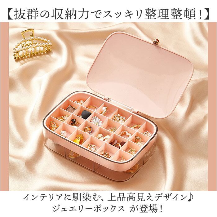 ・コンパクトながらもたっぷり収納できる、2段仕様。リングもネックレスもピアスもまるっと収納