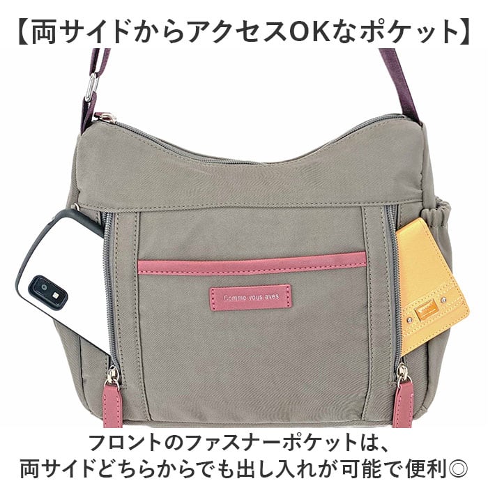・フロントのファスナーポケットは、両サイドどちらからでも出し入れが可能で便利◎