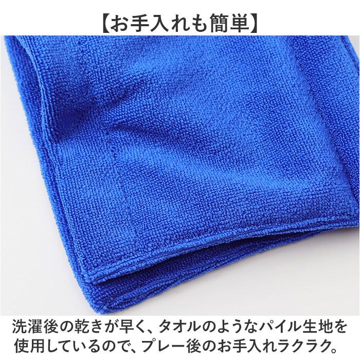 ・洗濯後の乾きが早く、タオルのようなパイル生地を使用しているので、プレー後のお手入れラクラク。