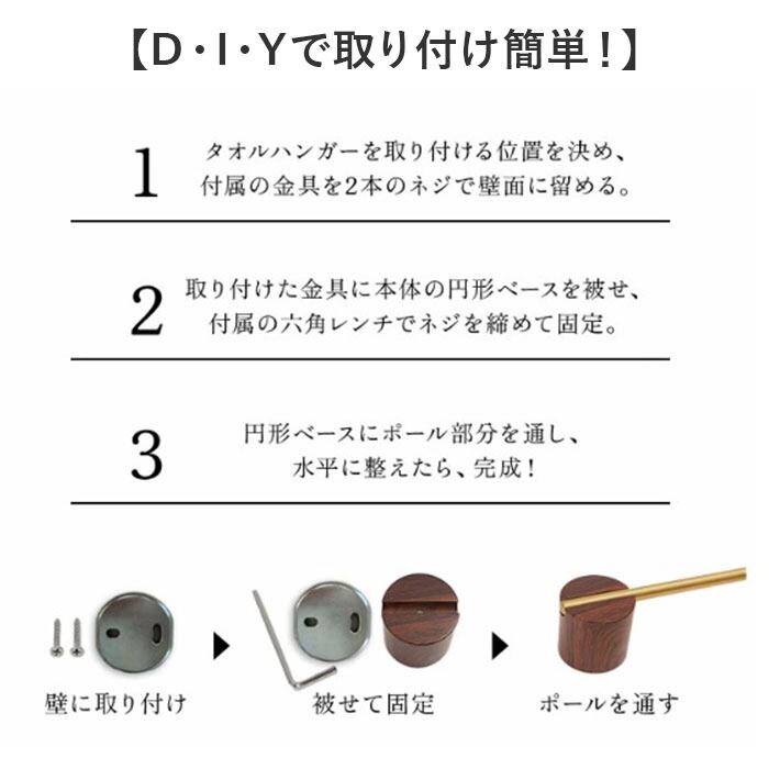 ・1.タオルハンガーを取り付ける位置を決め付属の金具を2本のスクリューネジで壁面に留める。