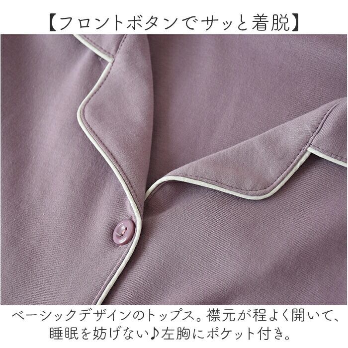 ・ベーシックデザインのトップス。襟元が程よく開いて、睡眠を妨げない♪左胸にポケット付き。