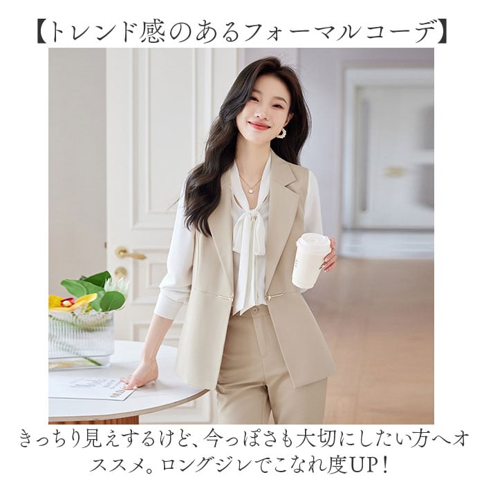 ・気になる腰まわりをカバーしてくれるジレ。スリムなシルエットでスラっと細見えが叶う♪