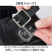 ・ストラップのバックル部分にはフックベルトを採用し、ベルトの調節なしで着脱が可能。
