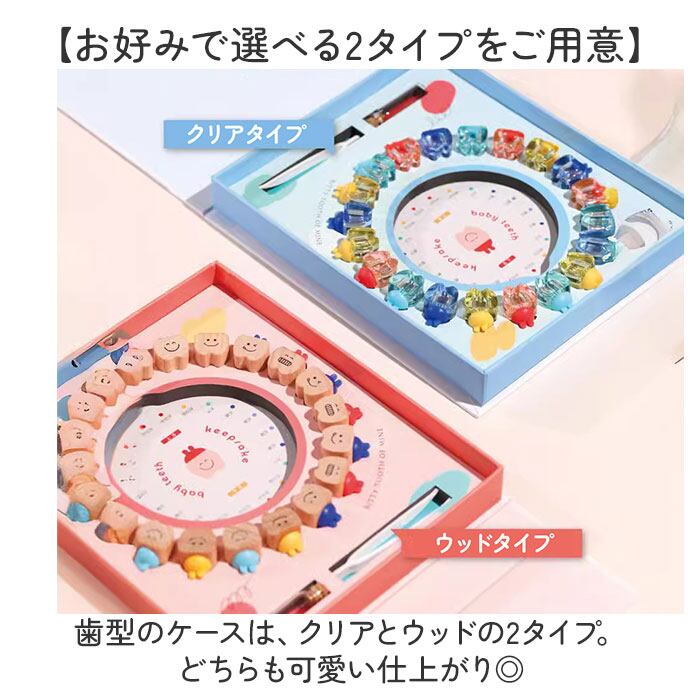 ・歯型のケースは、クリアとウッドの2タイプ。どちらも可愛い仕上がり◎