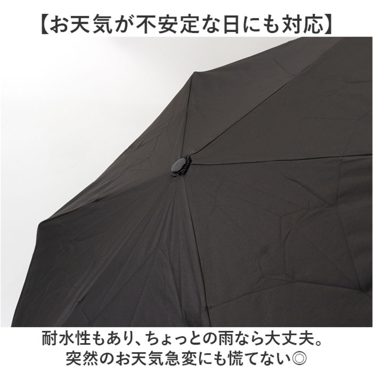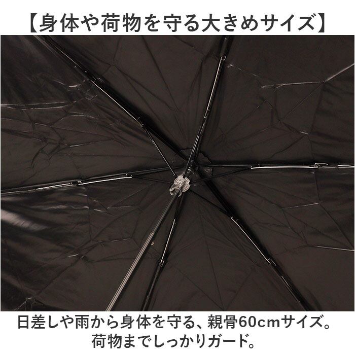 ・ブラックコーティング加工を施した「晴雨兼用折りたたみ傘 60cm」。