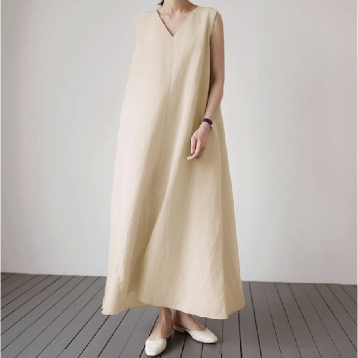 ワンピース レディース ノースリーブ vネック 通販 マキシワンピース マキシワンピ リネンワンピース ノースリーブワンピース ワンピ Aライン マキシ丈 マキシ ロング ロング丈 Vネック ゆったり 体型カバー 夏 涼しい シンプル おしゃれ きれいめ