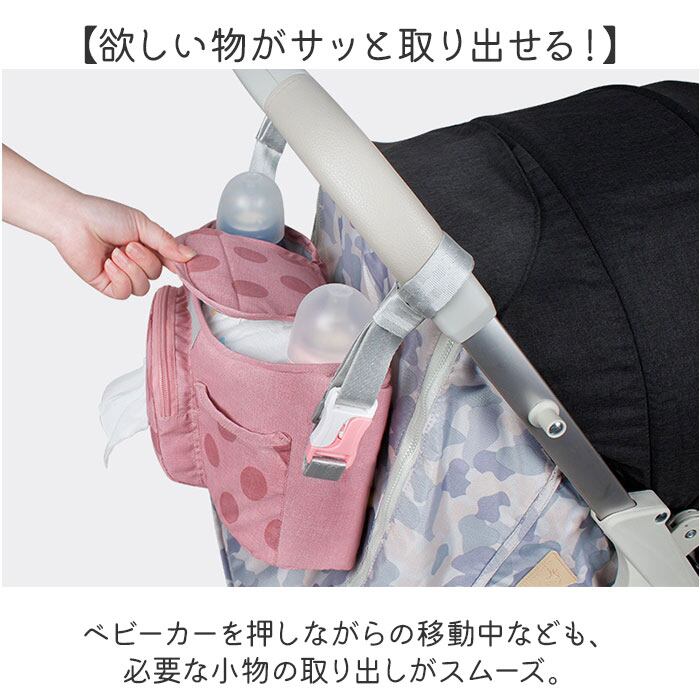 ・ベビーカーを押しながらの移動中なども、必要な小物の取り出しがスムーズ。