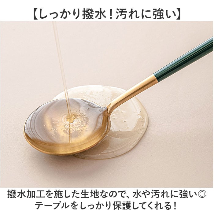 ・撥水加工を施した生地なので、水や汚れに強い◎テーブルをしっかり保護してくれる!