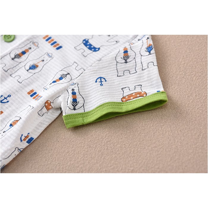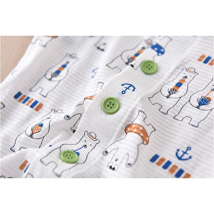 ・トップスはベーシックな前開き、パンツもサッと足入れOK。大きくったら着替えも1人で♪