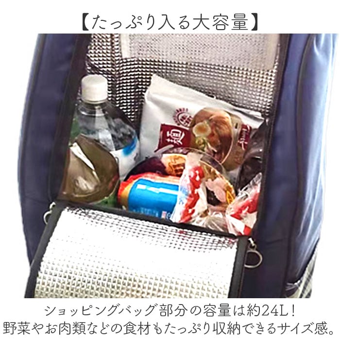 ・ショッピングバッグ部分の容量は約24L!野菜やお肉類などの食材もたっぷり収納できるサイズ感。