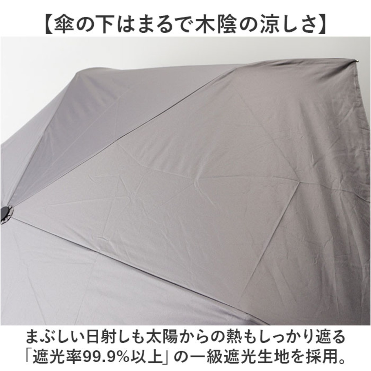 ・UVカット率99.9%以上の傘生地が日射しと共に降り注ぐ紫外線や地面からの照り返しもブロック!