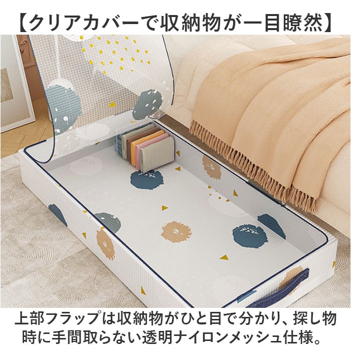 ベッド下 収納 Mサイズ 通販 収納ボックス 折りたたみ 衣類収納 収納ケース 布団収納ケース 省スペース 大容量 PVC製 ダブルファスナー 取っ手付き ナイロンメッシュ 防塵 防湿 書類 衣装 おもちゃ 雑貨 クローゼット 整理 おしゃれ