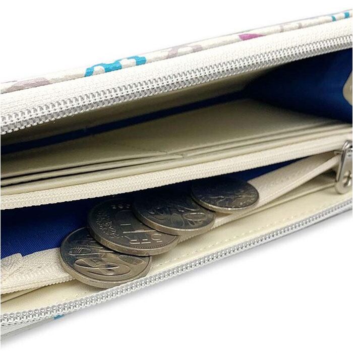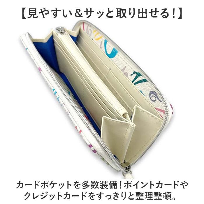 ・コの字型に大きく開くファスナーを開けるとカードポケットや札入れ、フリーポケットもあり収納力抜群!