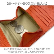 ・BOX型の小銭入れは、ガバッと大きく開くので小銭が見やすく、出し入れもラクラク。