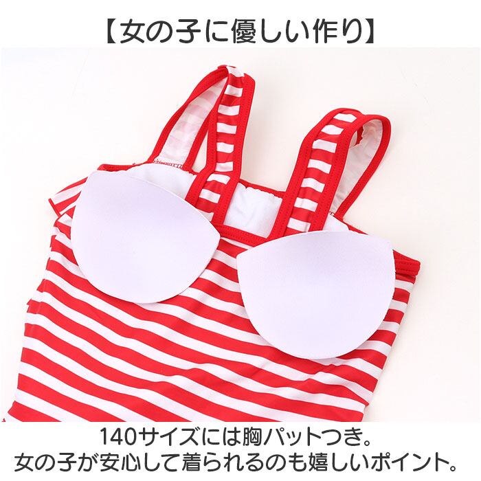 140サイズには胸パットつき。女の子が安心して着られるのも嬉しいポイント。