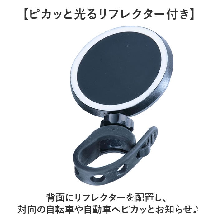 ・背面にリフレクターを配置し、対向の自転車や自動車へピカッとお知らせ♪