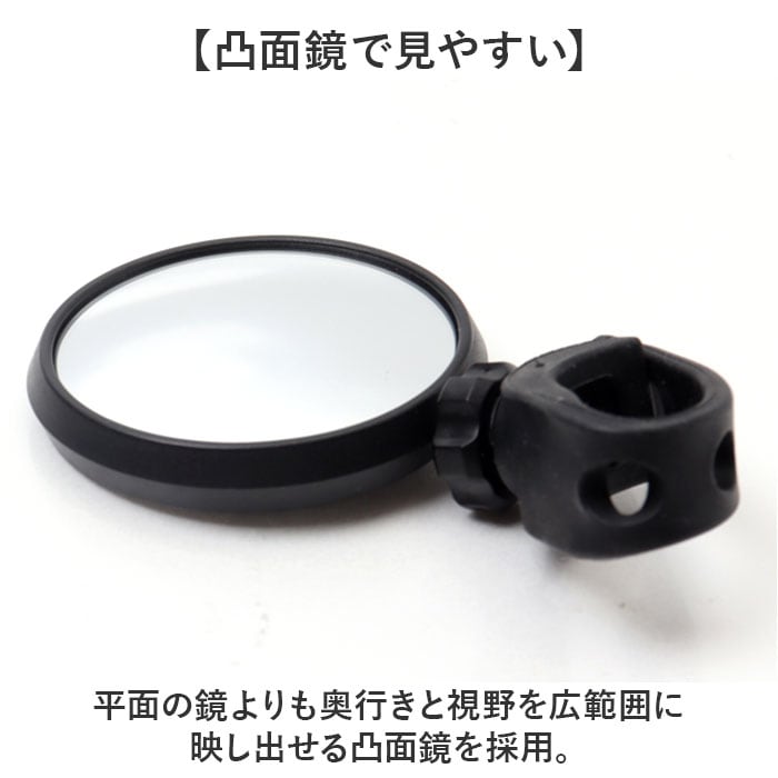 ・平面の鏡よりも奥行きと視野を広範囲に映し出せる凸面鏡を採用。