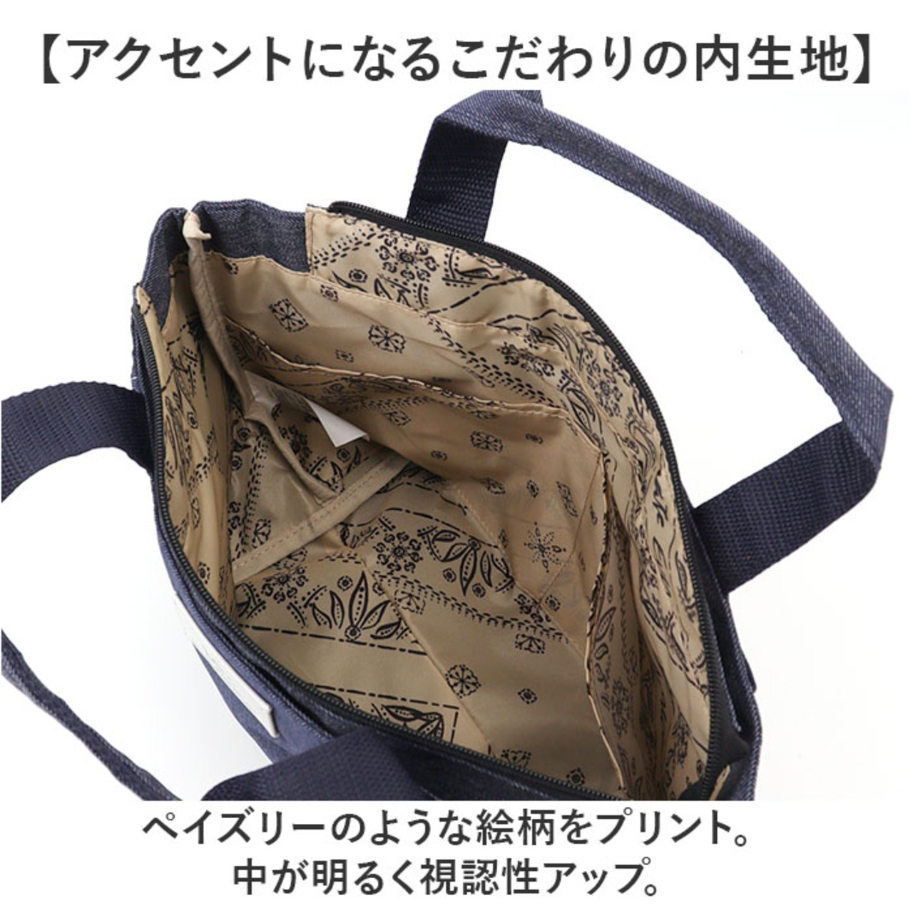 ・ペイズリーのような絵柄をプリント。中が明るく視認性アップ。
