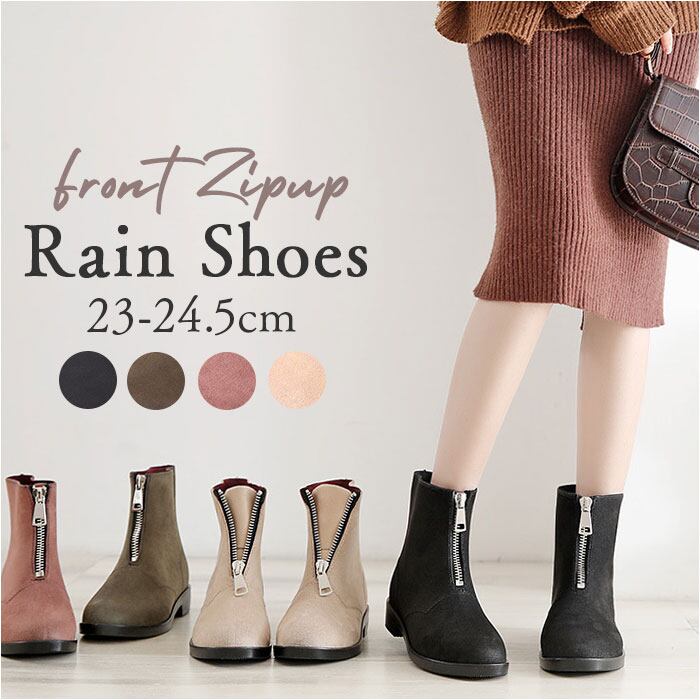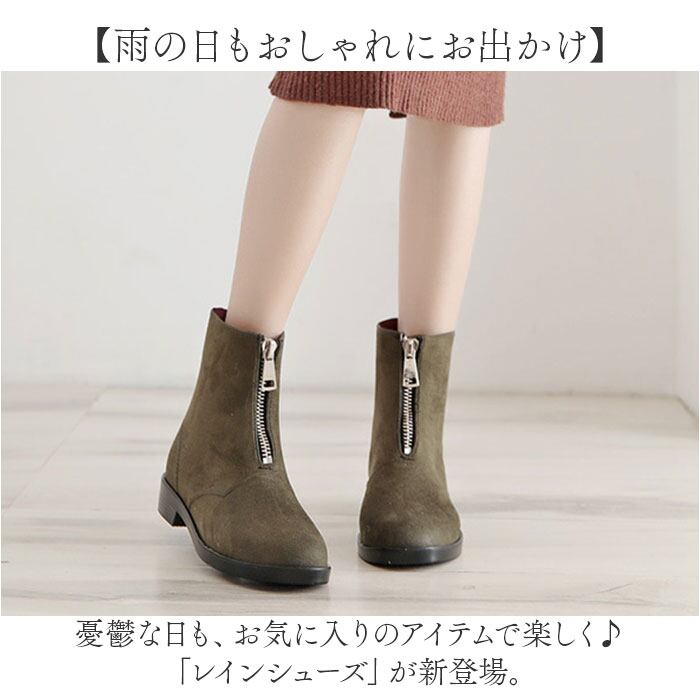 ・お天気の不安定な日に履いても違和感なし。フロントジップのデザインがアクセント。