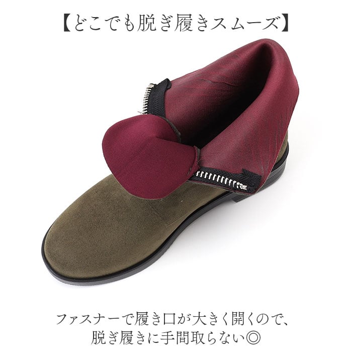 ・ファスナーで履き口が大きく開くので、脱ぎ履きに手間取らない◎