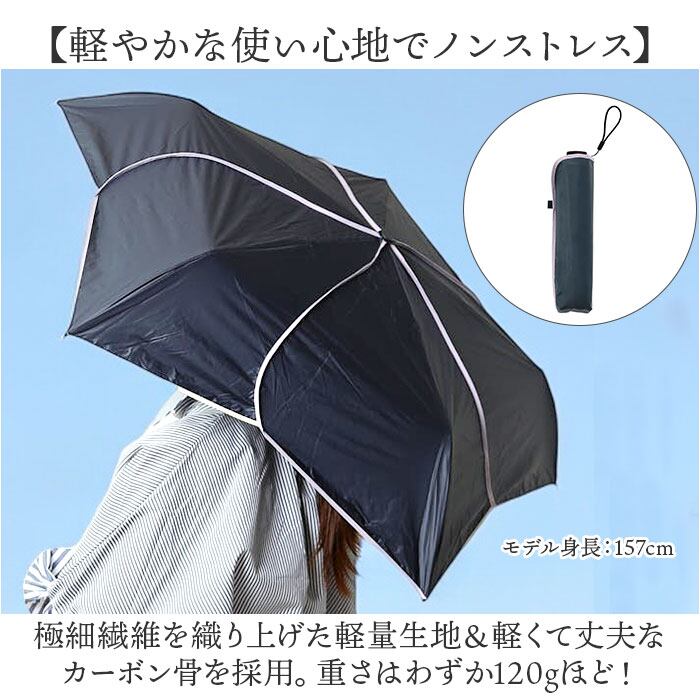 ・極細繊維を織り上げた軽量生地&軽くて丈夫なカーボン骨を採用。重さはわずか120gほど!