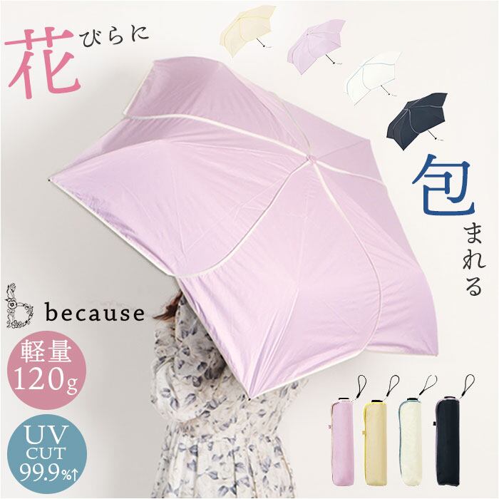 because ビコーズ 折りたたみ傘 軽量 レディース 通販 折り畳み傘 傘 かさ カサ 晴雨兼用傘 雨傘 日傘 晴雨兼用 折り畳み 折りたたみ UV対策 紫外線対策 遮熱 熱中症対策 花びら 花 はな PUスーパーライト コンパクト スリム 上品