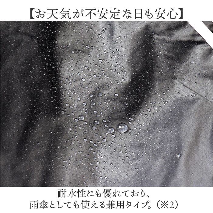 (※2)生地に防水加工を施しておりますが、日傘を主として作られた商品のため、長時間の雨傘としての使用はご注意願います。