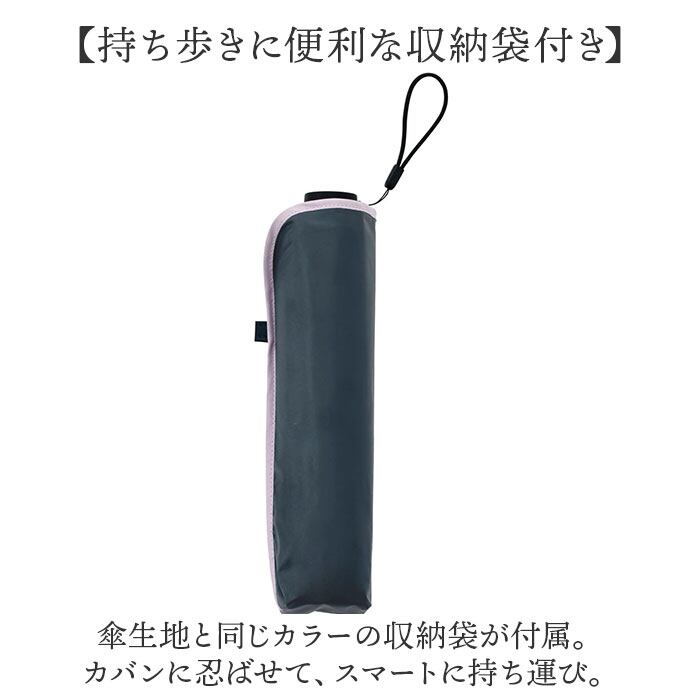 ・傘生地と同じカラーの収納袋が付属。カバンに忍ばせて、スマートに持ち運び。