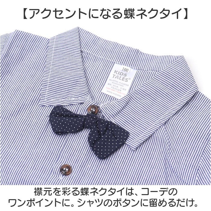 ・ロンパース仕様のシャツ、パンツ、サスペンダー、蝶ネクタイのセット。色んなシーンで活躍。