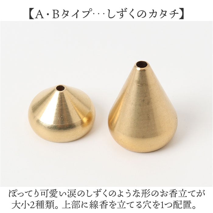 ・ぽってり可愛い涙のしずくのような形のお香立てが大小2種類。上部に線香を立てる穴を1つ配置。