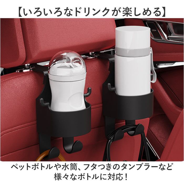 車 ドリンクホルダー 後部座席 通販 カップホルダー スマホホルダー 車載 ジュースホルダー ヘッドレスト 多機能 車用 水筒 カップ タンブラー 吊り下げフック 傘 バッグ 小物入れ 取付簡単 リアポケット ドライブ 旅行 車内 整理 カー用品