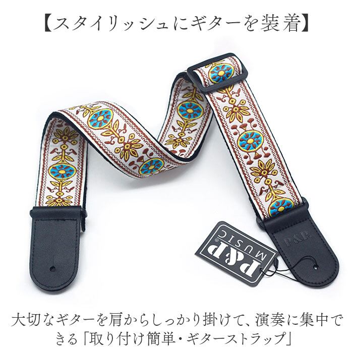 ・大切なギターを肩からしっかり掛けて、演奏に集中できる「取り付け簡単・ギターストラップ」