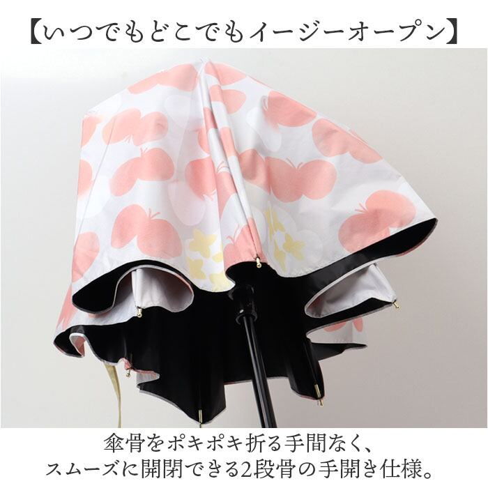 ・傘骨をポキポキ折る手間なく、スムーズに開閉できる2段骨の手開き仕様。