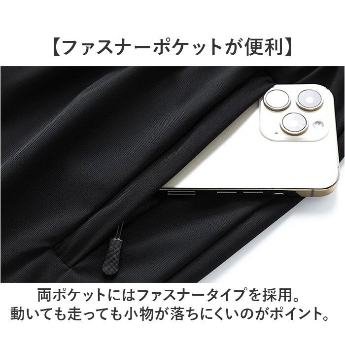 ・両ポケットにはファスナータイプを採用。動いても走っても小物が落ちにくいのがポイント。