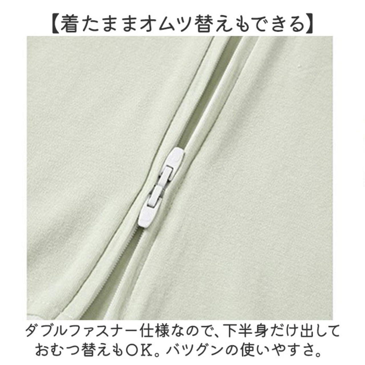 ・ダブルファスナー仕様なので、下半身だけ出しておむつ替えもOK。バツグンの使いやすさ。