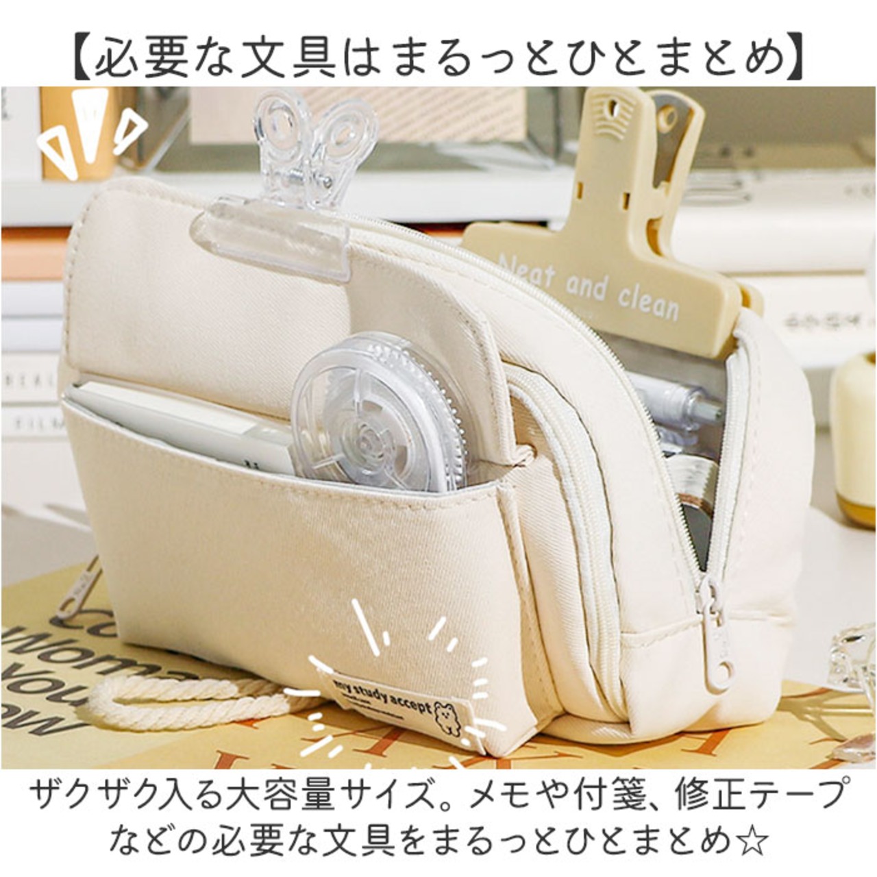 ・ザクザク入る大容量サイズ。メモや付箋、修正テープなどの必要な文具をまるっとひとまとめ☆