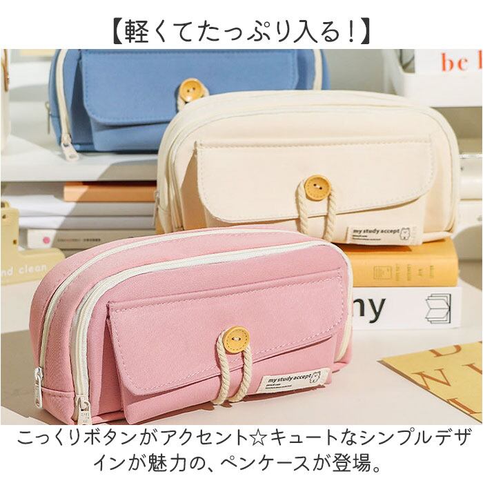 ・こっくりボタンがアクセント☆キュートなシンプルデザインが魅力の、ペンケースが登場。