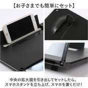・中央の拡大鏡を引き出してセットしたら、スマホスタンドを立ち上げ、スマホを置くだけ!