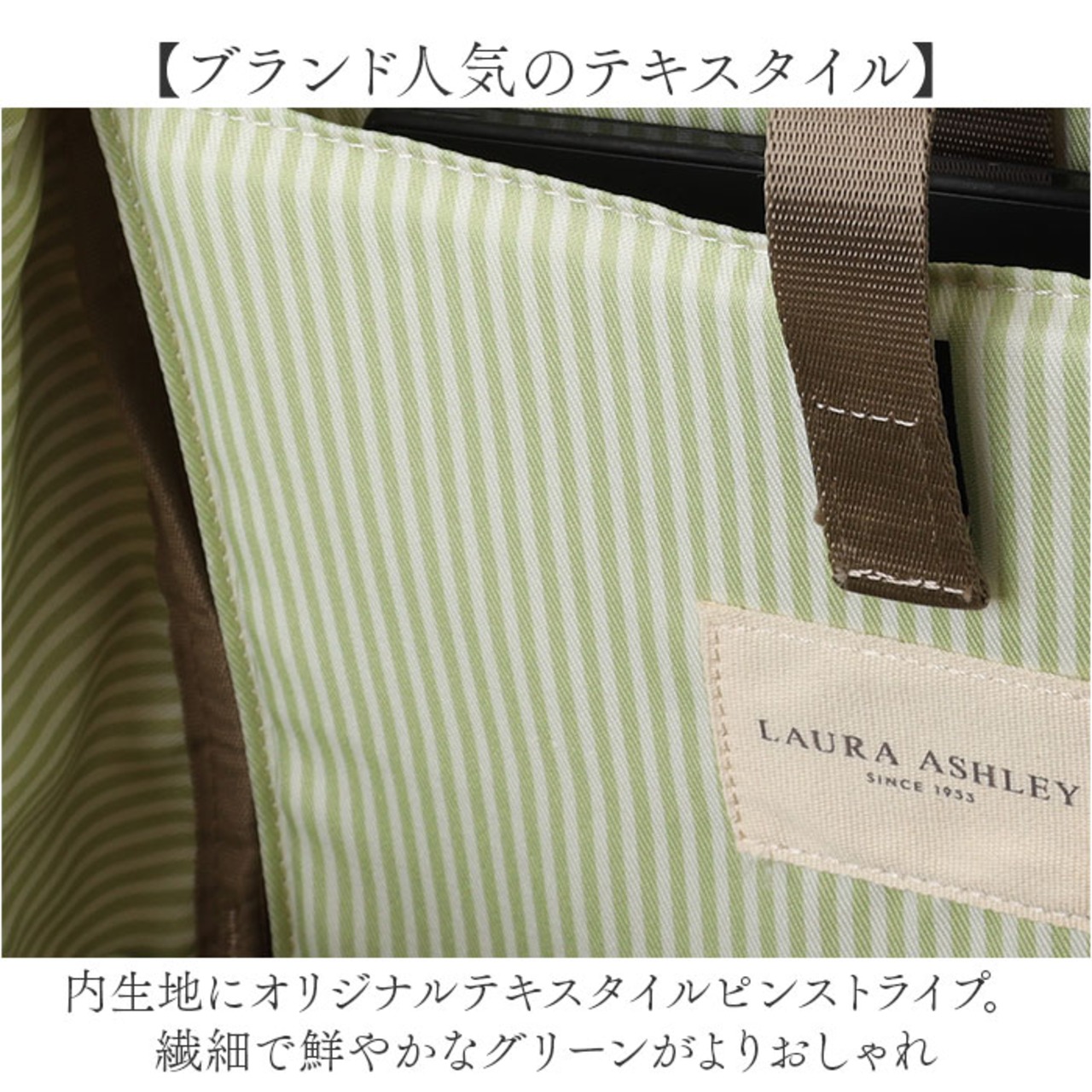 ・内生地にオリジナルテキスタイルピンストライプ。繊細で鮮やかなグリーンがよりおしゃれ