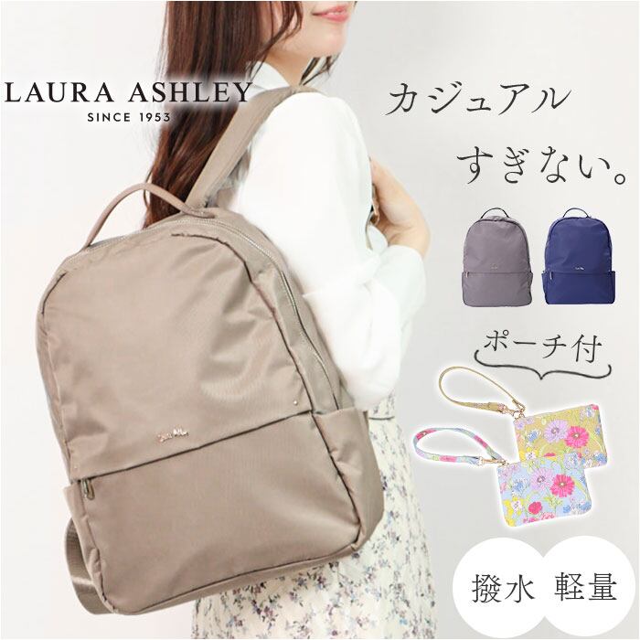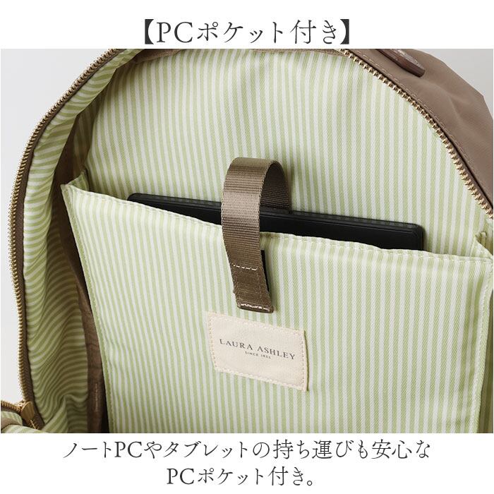 LAURA ASHLEY ローラアシュレイ デイパック ILNL-02 通販 リュック リュックサック マザーズバッグ マザーズバック ナイロン 軽量 軽い 大容量 大きめ PC 収納 パソコン 多機能 カジュアル シンプル 無地 大人 撥水 通勤 通学