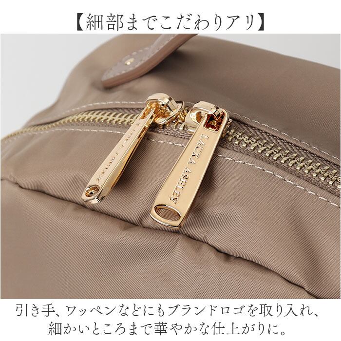 ・引き手、ワッペンなどにもブランドロゴを取り入れ、細かいところまで華やかな仕上がりに。