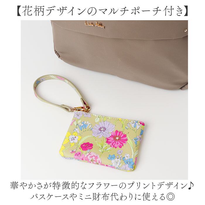 【花柄デザインのマルチポーチ付き】