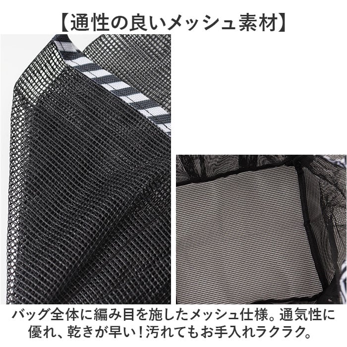 ・バッグ全体に編み目を施したメッシュ仕様。通気性に優れ、乾きが早い!汚れてもお手入れラクラク。