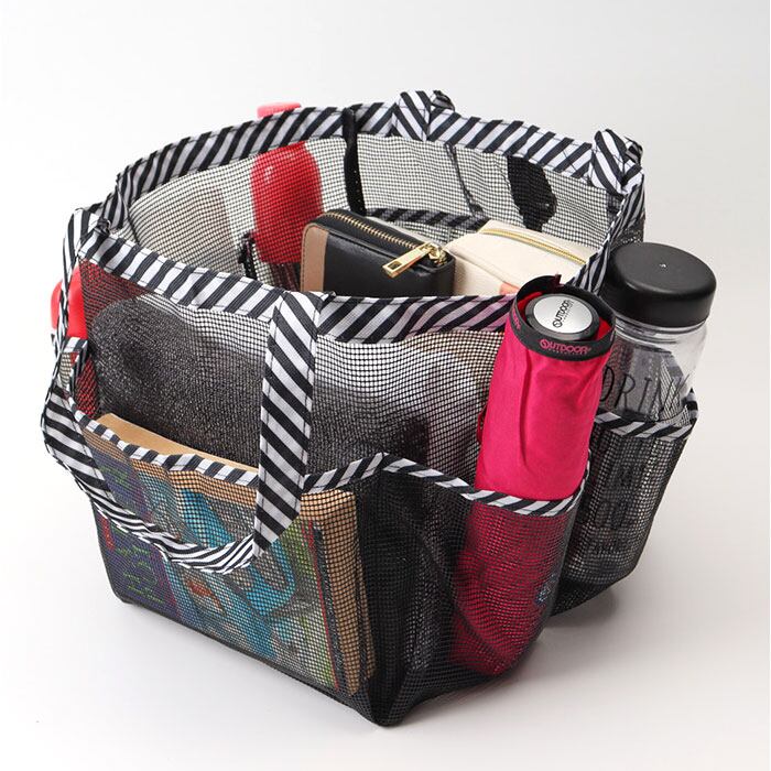 メッシュバッグ 収納ポケット付き 軽量 ビーチバッグ