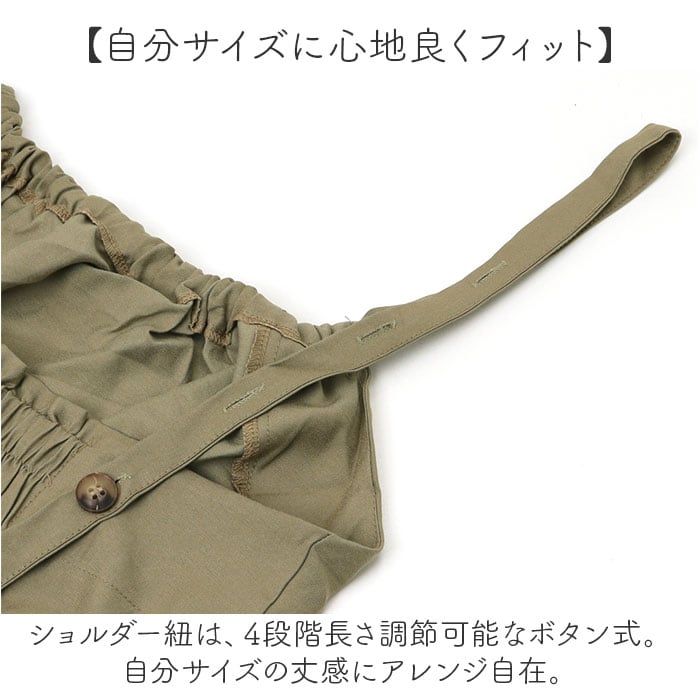 ・薄手のコットン混紡素材で仕上げ、アクティブに動けるサロペット。色んなシーンで活躍◎