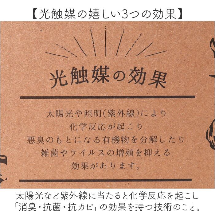 ・太陽光など紫外線に当たると化学反応を起こし「消臭・抗菌・抗カビ」の効果を持つ技術のこと。