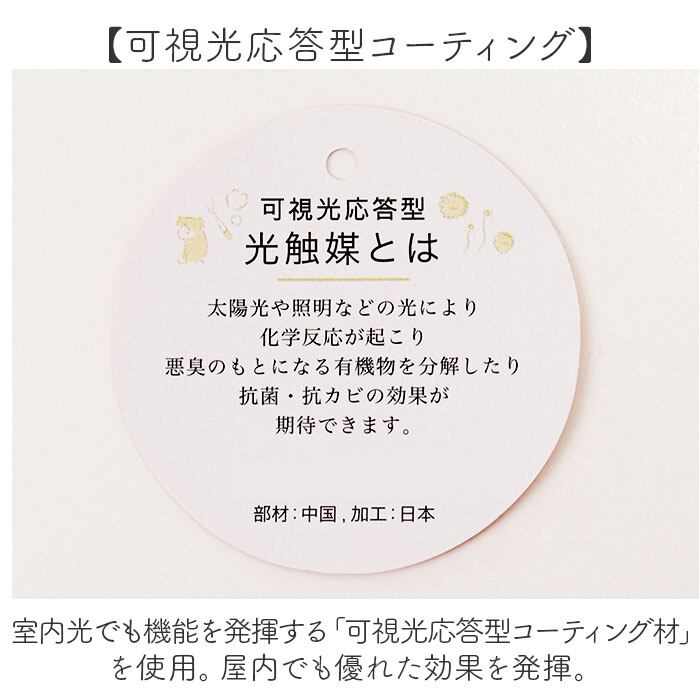・室内光でも機能を発揮する「可視光応答型コーティング材」を使用。屋内でも優れた効果を発揮。